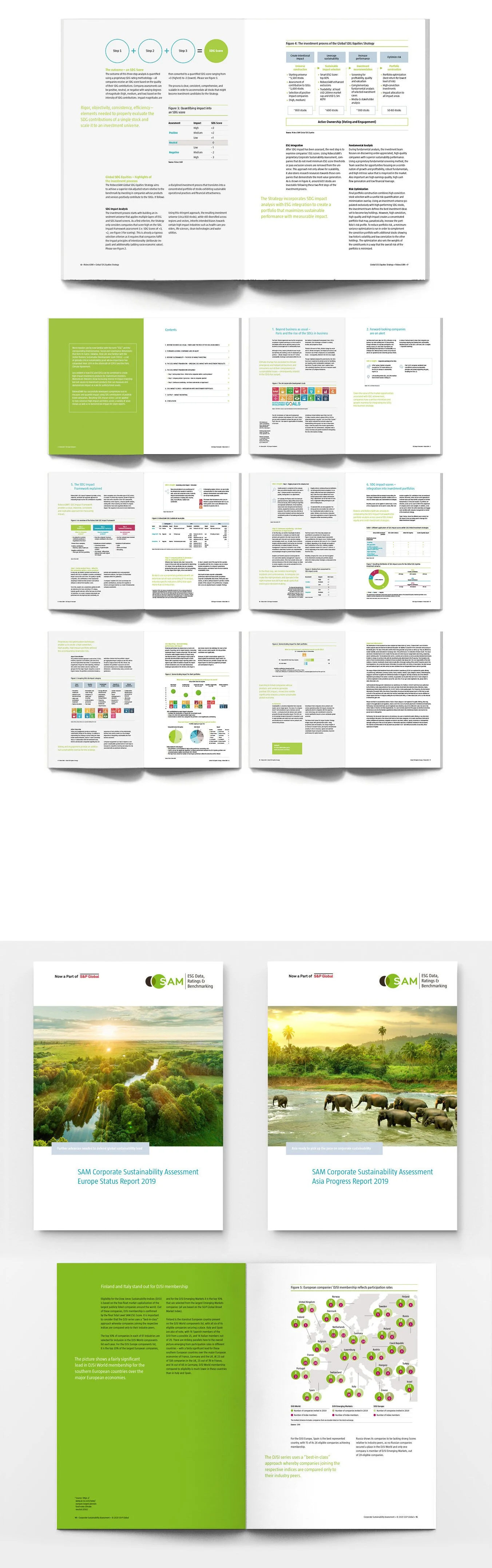 Broschürendesign, RobecoSAM und SAM / Diseño de folletos para RobecoSAM y SAM